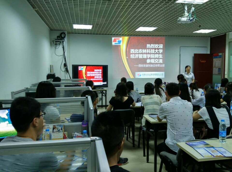 为加强校地合作,提高我校金融硕士专业学位(简称MF)研究生的社会实践能力,9月7日,在牛荣副教授、罗添元老师以及石宝峰老师的带领下,经管学院2015级44名MF研究生赴中国中投证券西安友谊东路营业部、武功电子商务产业园区,进行了为期一天的教学参观实习。
