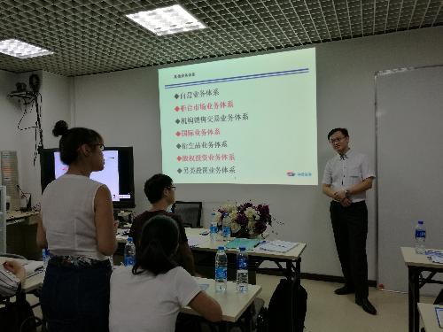 上午9时,带队教师带领研究生在中国中投证券西安营业部进行参观学习。首先,中投证券西安营业部副总经理、市场总监郭凌艳女士对学院师生的到来表示热烈欢迎;随后,纪宏斌经理带领大家参观了西安营业部,为同学们讲解了中投证券的发展历史、主营业务。其次,中投证券高级经济师姚中辉先生和郭平先生分别为同学们做了《从证券业务看中国金融体系》和《如何在股市中积累/定位/认知市场/实战进阶?》的专题讲座。姚老师的报告,从中投证券公司简介、证券业务分类、证券业务监管主体、资本市场、中国金融体系等五个方面,为大家解读了证券业在中国金融体系发展中的演变特征;并结合陕西高速债券承销项目,以实际案例为切入点,详尽阐释了如何发掘客户需求、对客户做尽职调查、撰写融资方案、确立承销委托关系、发行债务等债券承销项目的业务流程和操作要点。郭老师的报告,从股市三句话“历史会重复”、“价格沿着一定趋势运行”、“价格包含一切信息”入手,幽默诙谐地为同学们讲解了如何在熊市和牛市中积累经验、如何认识股市、如何在市场中定位和挑选股票、如何实战进阶。报告会结束,同学们就自己关心的考证、毕业应聘等问题与两位老师进行了深入沟通交流。