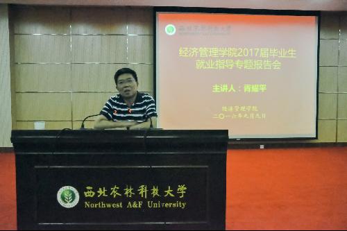 温晓林向同学们通报了2016届毕业生就业情况,部署17届毕业生就业工作重点。他鼓励同学们要揭开就业神秘的面纱,不好高骛远、不妄自菲薄,树立正确的就业观,勇于尝试、脚踏实地求职;期间遇到问题及时与学院、与老师沟通。并预祝大家找到满意的工作。