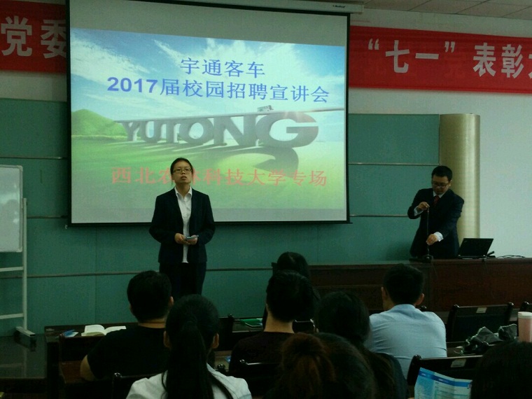 9月19日下午4点,郑州宇通客车股份有限公司西安站站长张大鹏等一行三人在永利官网603会议室举办宣讲会,永利官网70余名毕业生参加了此次宣讲。