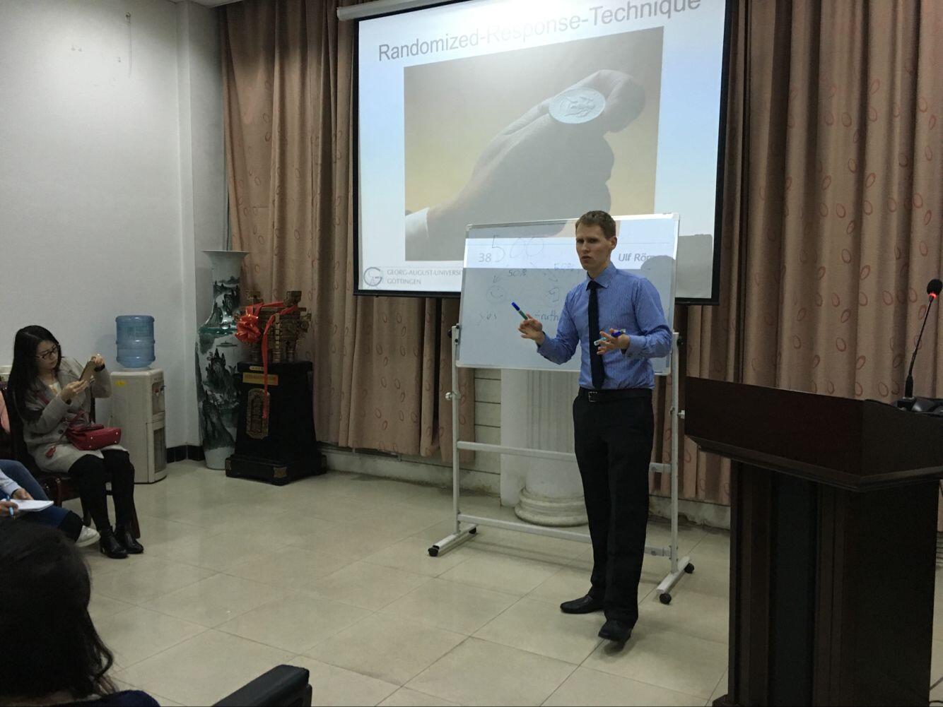 27日,Turvey教授和Ulf博士应邀在601会议室为永利官网部分青年教师和博硕士研究生分别作了“Insuring Agricultural Loans with Risk-Contingent Credit”和“How does asymmetric information in individual microfinance”的学术报告,回答了师生的相关提问,并就相关研究领域的热点问题与永利官网师生进行交流探讨。两位专家开放的授课风格,前瞻的研究视角,新颖的计量方法,使与会师生深受启发。