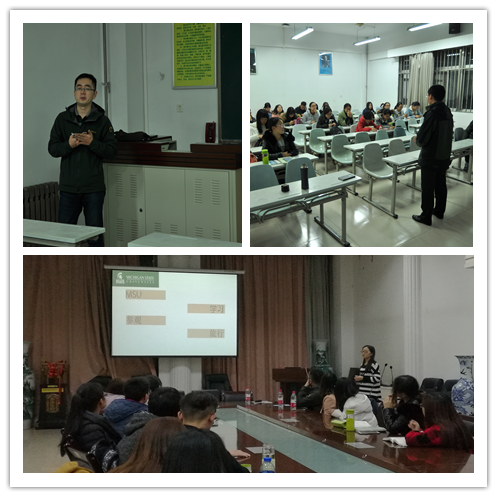 本次访学经验交流会展示了永利官网学生访学的学习工作状态,让同学们了解了申请美国MSU访学的基本流程,极大地吸引了同学们的热情和兴趣,通过积极的互动交流,使同学们对出国访学有了更细致、更深刻的了解。