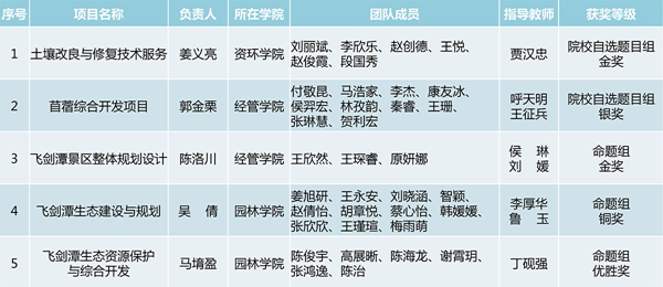 首届全国林业创新创业大赛以“山水融智 绿色创赢”为主题,面向全国涉林院校学生和有关规划设计单位开展竞赛,分为院校自选题目组、社会自选题目组和命题组3个组别,在常规创新创业竞赛规则的基础上,引入江西省宜春市袁州区飞剑潭景区作为指定的项目元素,鼓励各团队完成具有林业特色的命题创新创业项目。大赛启动仪式于今年5月在我校举办,共有来自全国110多个单位、组织申报的500多个项目报名参赛。参赛团队报名结束后,经初赛(网络评审)进行遴选,随后由我校、北京林业大学、东北林业大学、南京林业大学、福建农林大学等10个单位分别承办分区半决赛,共推进41个项目进入全国总决赛,最终三个组别各评选出金奖1项、银奖2项、铜奖3项。我校共有5个项目进入总决赛并全部获奖,获奖数量为全国各高校首位。