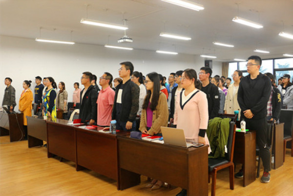 会议伊始,全体起立,奏唱国歌。张军驰代表学院党委对全体参与本次培训班的党员发展对象表示热烈的祝贺,他着重介绍了本次集中培训的目的、意义及重点学习内容,并对培训纪律和学习效果提出要求。他希望,通过这次集中培训,大家能进一步明确党员标准以及入党要求,努力提高政治素养和践行社会主义核心价值观的意识和能力,不断增强四个意识。在向党组织靠拢的过程中,思想上的准备能更充分,行动中的定位能更准确,前进时的方向能更清晰。