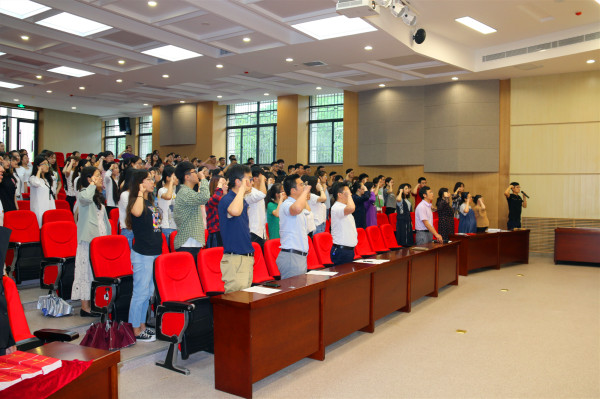 会议在庄严的国歌声中拉开帷幕,全体党员在辅导员的带领下,面向党旗重温入党誓词,进行庄严宣誓。