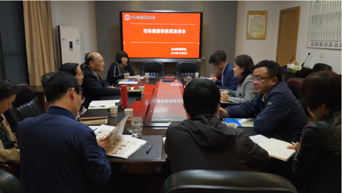 为适应学院双一流学科建设需要,加强学院国际化交流与合作,yl6809永利官网范裕健兼职教授座谈会于2019年10月8日下午14:30在学院C315会议室举行。本次座谈会由赵敏娟院长主持,陕西省侨联副主席、我校国际交流处处长余劲教授,学院党委书记张岁平,副院长石宝峰,MBA教育中心、经济系、管理系部分教研室等基层部门教师代表10余人参加。