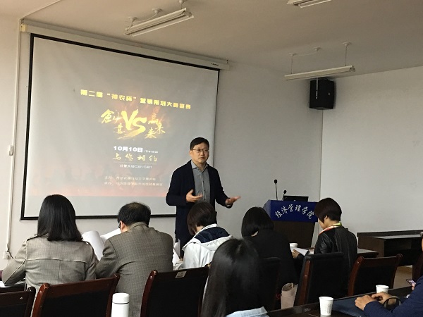 10月10日晚19:00,我校“一院一品”学科竞赛、第二届“神农杯”营销策划大赛复赛在yl6809永利官网C301、C401分两个会场顺利举行。此次比赛由永利官网市场营销教研室承办,以“创意赢未来”为主题。组委会收到了来自9个学院64个团队257名选手的参赛申请,经过第一轮通讯赛,共有20支团队脱颖晋级复赛。大赛邀请了管理系主任刘超副教授,经济系主任王秀娟副教授、李桦教授等10位教师代表担任评委,200余名师生观摩比赛。