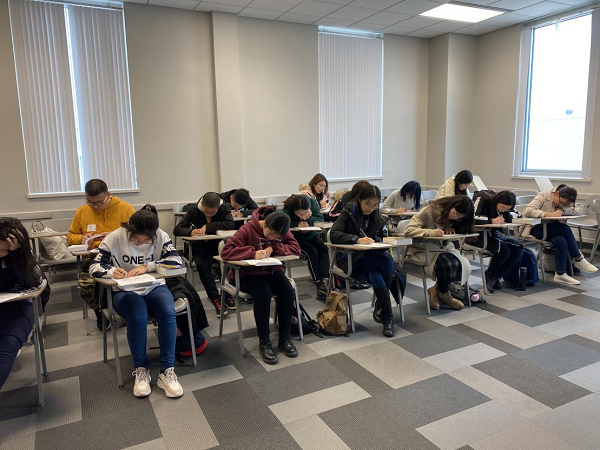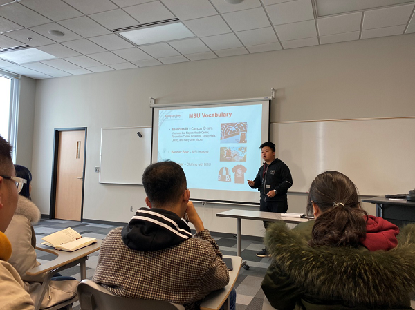 经过一晚休整后,1月10日上午,访学团办理了入校手续,每位同学都拿到了在密苏里州立大学学习生活的学生证——“熊卡”。接着来到ELI(English Language Insitute),幽默风趣的Pascal老师非常热情地向大家介绍了在ELI学习的注意事项。随后,同学们共进行了五次测试,并据此被分配到相应等级水平的班级准备开始后续的语言课程学习。