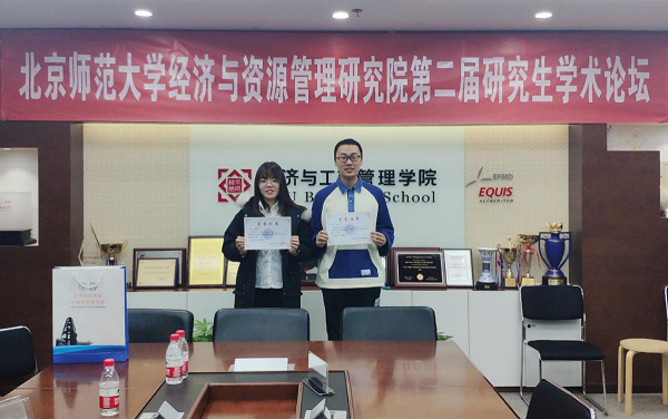 12月7日,“北京师范大学经济与资源管理研究院第二届研究生学术论坛”在北京师范大学海淀校区成功举办。论坛共收到来自北京大学、复旦大学、中国人民大学、中国农业大学、yl6809永利官网等15所高校共100余份论文投稿,经会议筛选,最终入围33篇论文进行汇报,永利官网研究生王静、张思阳、丁锐受邀参会。