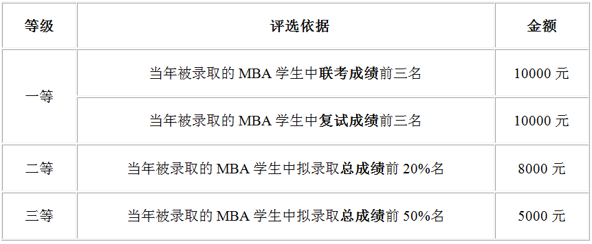 1.第一志愿报考奖学金:凡是第一志愿报考yl6809永利官网全日制MBA并被录取的学生,在入学报到后即可享受5000元新生奖学金。