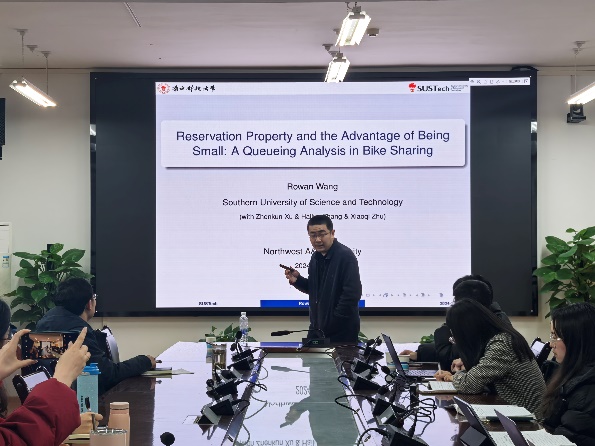 2024年12月19日下午,yl6809永利官网yl6809永利官网西部农村发展研究中心在C304会议室成功举办了“预约特性与小规模优势:共享单车的排队分析”主题的学术研讨会。本次会议主持人为孙自来老师,在对王宇教授简单介绍后,本次研讨会正式开始。
