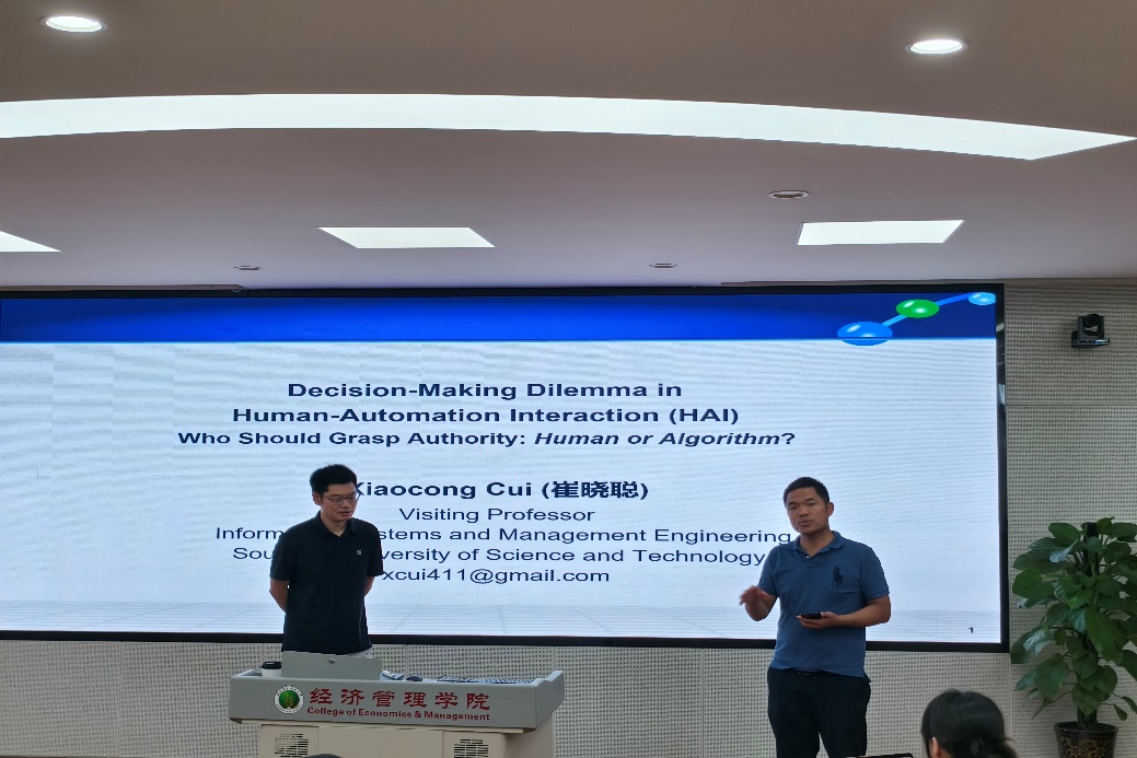 7月10日下午,yl6809永利官网yl6809永利官网西部农村发展研究中心在C301会议室成功举办了以“在人机协作团队中,任务分配的权力应归谁所有:人类还是算法?”为主题的学术研讨会。本次会议主持人为阮俊虎教授,在对崔晓聪博士进行简单介绍后,本次研讨会正式开始。