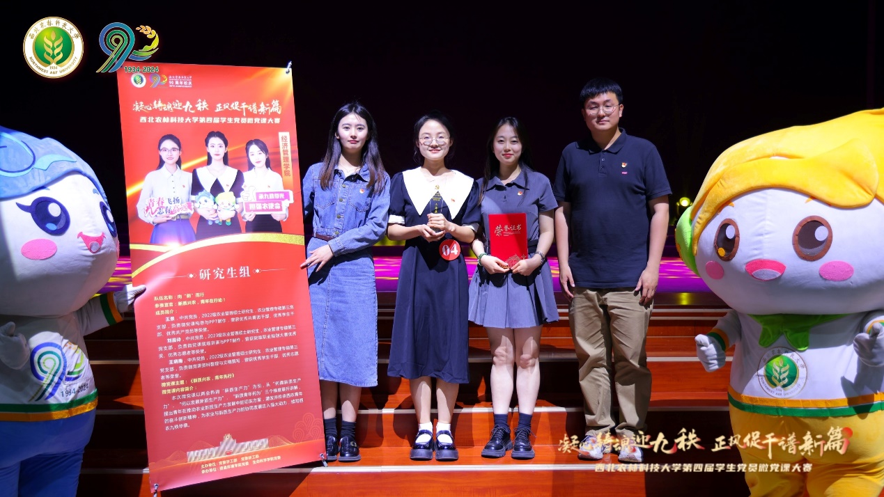 6月4日,“第四届学生党员微党课大赛”总决赛在北绣南报告厅圆满落幕。永利官网农业管理专硕第三党支部王景、刘晨诗、王晓南组成的“向新而行”研究生团队,荣获yl6809永利官网第四届学生党员微党课大赛研究生组三等奖,党支部书记闫泽禹荣获“优秀指导教师”称号。