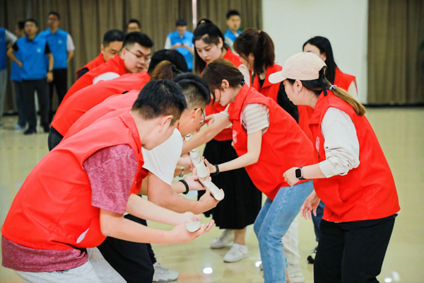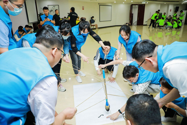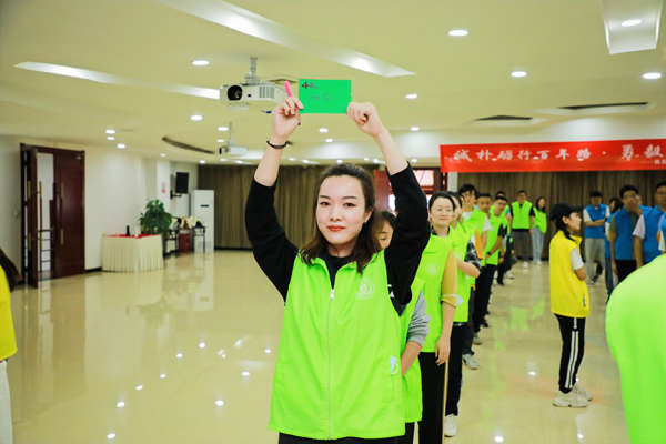 本次主题拓展为期一天,同学们组建团队,设计队旗、团队pose照;“挑战No1”,“不倒森林”“移动高尔夫”“激情节拍”的热身和士气调动;规定时间完成办学理念翻牌接龙;“驿站传书”,对大家分类、设计传递信息方法提出的新挑战等既让大家兴奋,又引人深思。