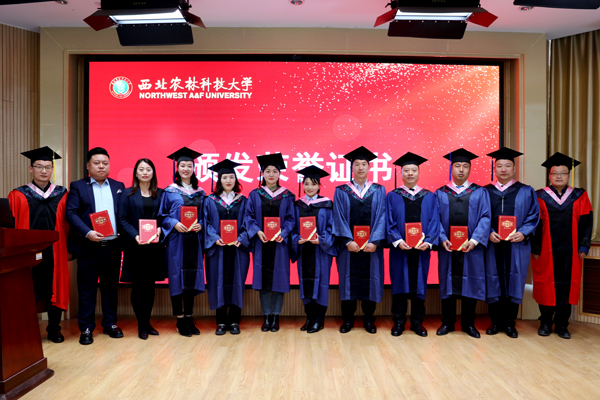 陕西林业集团长隆生物有限公司总经理汪冠军代表毕业生发言。他回顾并总结了自己的学习生涯和求学心路历程,成长,收获…,表达了对母校的深深感激和无限眷恋。特别向母校报告了自己利用所学,践行“经国本、解民生、尚科学”的成果:通过发展产业,带领2608户贫困户脱贫;与学校技术合作发展壮大了红豆杉产业,公司在红豆杉领域基地、育苗及科研成果均达到了国内第一,企业成长为国家林业省级龙头企业,农业市级龙头企业。表示,在未来的路上,将时刻用“诚朴勇毅”的校训砥砺自己,用奋斗、作为赢得更好的成绩,来诠释西农人的风采和定义。