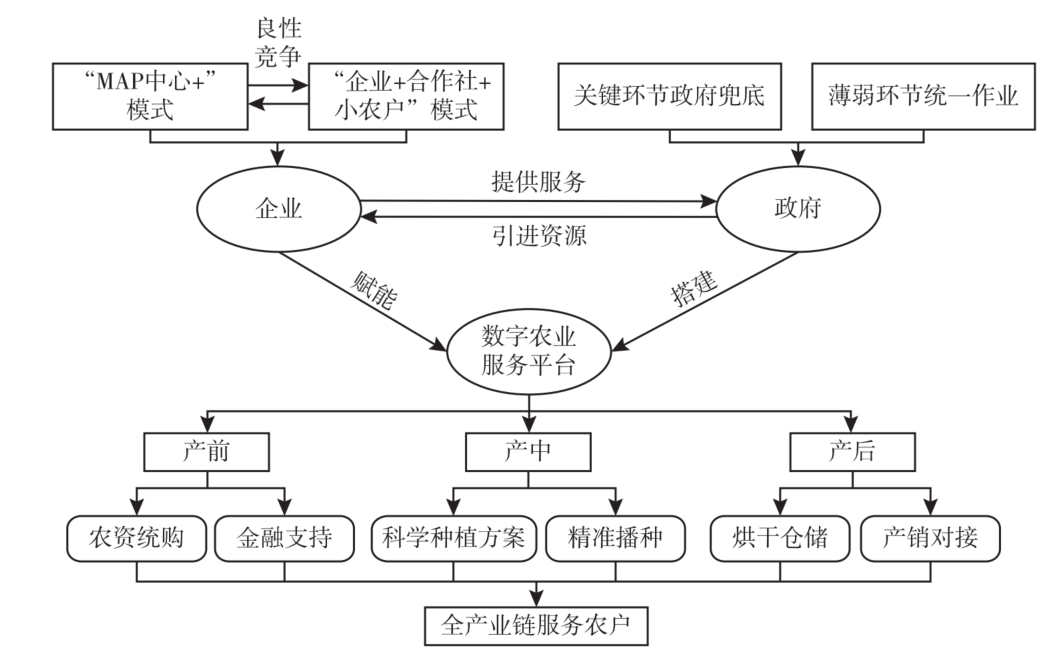 本文的边际贡献主要体现在以下两个方面。一是研究视角的拓展。本文以数字技术兴起这一时代契机为抓手,分析数字时代农业社会化服务体系建设的关键动因以及所面临的现实困境,基于多个典型模式的经验,提出符合中国实际国情的体系建设战略。二是研究对象的丰富。本文的研究对象涵盖企业、职能部门和地方政府,三类研究对象的功能类别各不相同,有助于从多个角度得出普适性结论。