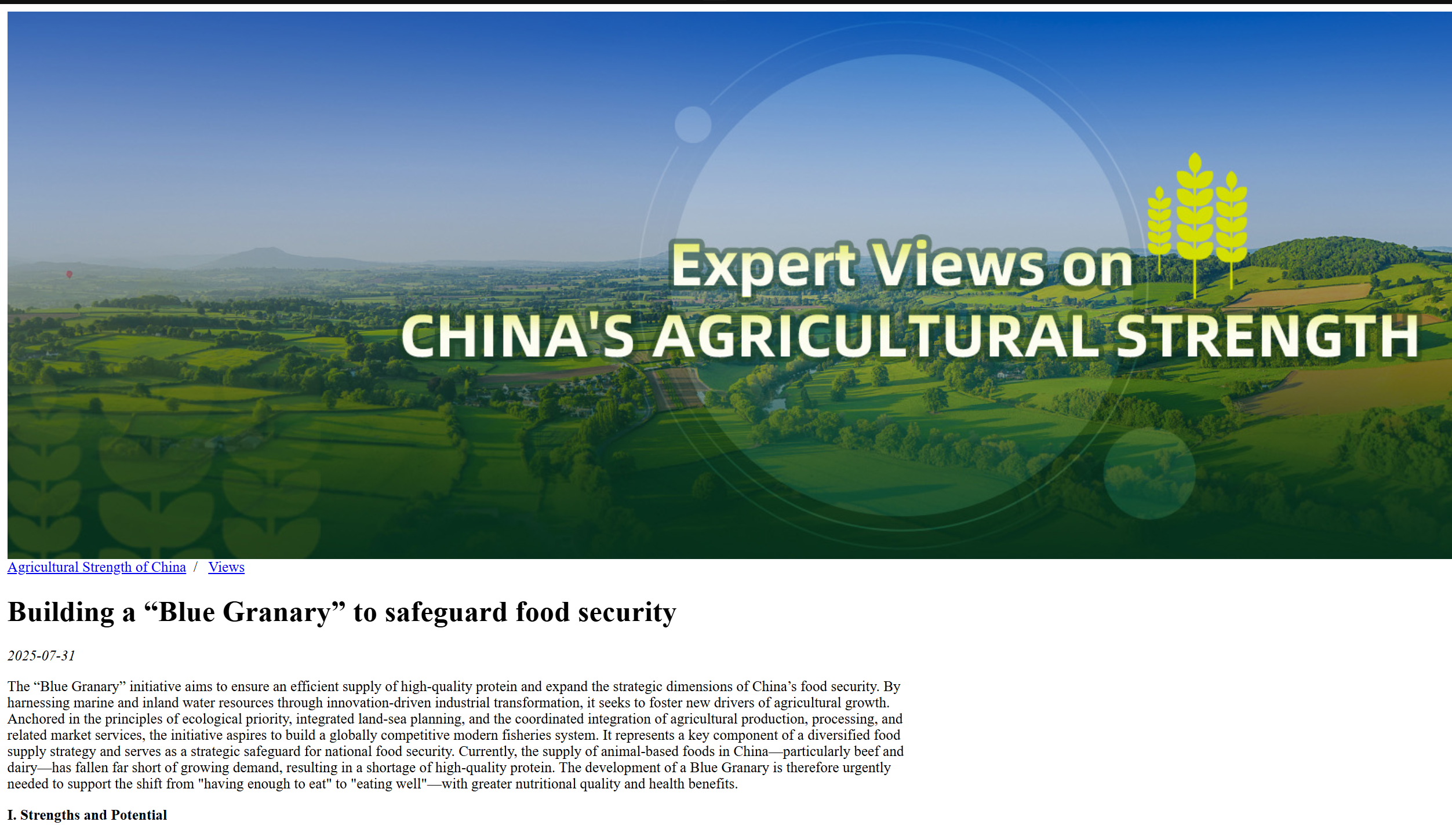 • 任彦军教授在China Daily上指出:建设“蓝色粮仓”,保障粮食安全