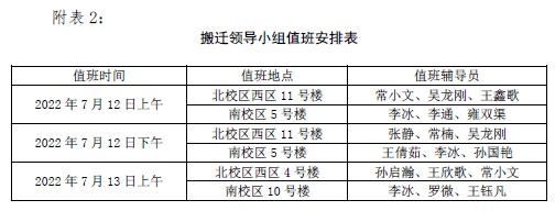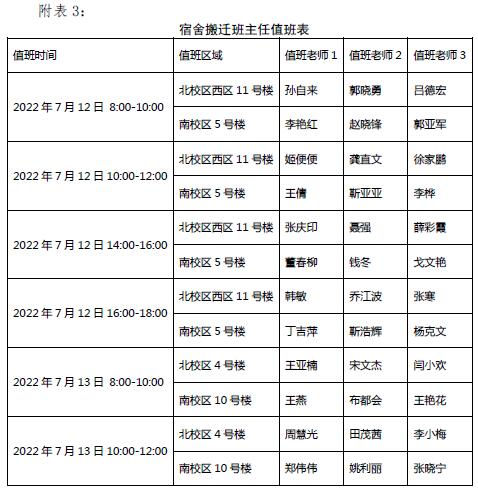 2.本次搬迁时间紧、工作量大,为避免不必要的损失,请各位同学提前用编织袋装好行李并标明班级、姓名、新宿舍号及联系方式,行李上厢式货车,人乘坐校车,两车同步,下车后按次序迅速卸下行李,不要拥挤。