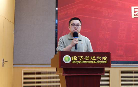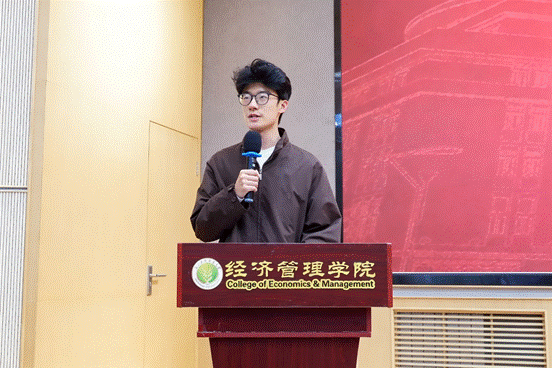 大会正式开始,运动员代表刘步凡上台发言,对学院的精心组织与全力支持表示感谢,分享了运动员们积极参赛的初心和对本次比赛的期待。他代表全体运动员表态,将以最饱满的状态投入训练,发扬团结协作、奋勇拼搏的精神,严守规则、尊重对手,全力展现经管学子的朝气与素养,力争在赛场上为学院斩获荣誉。