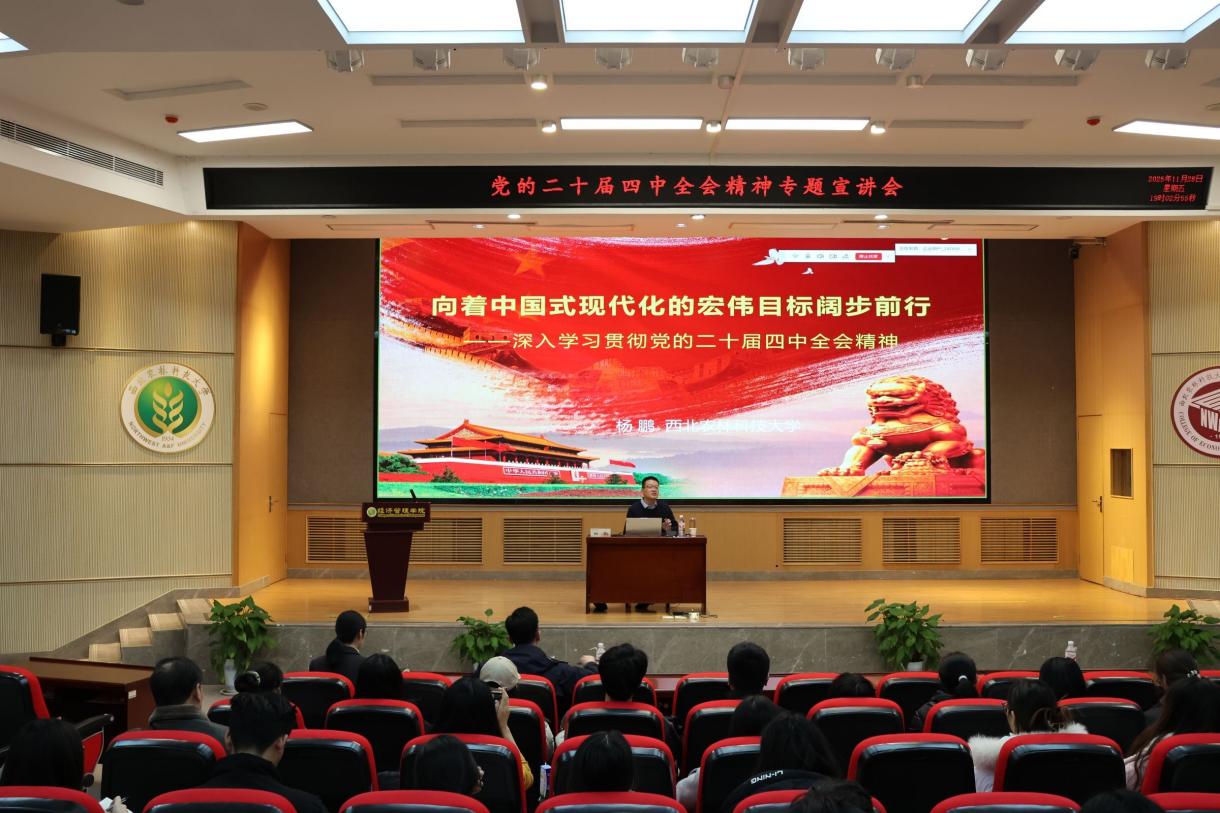 党的二十届四中全会是向第二个百年奋斗目标进军关键节点的重要会议,擘画了“十五五”蓝图,锚定了中国式现代化发展航向。为深入学习贯彻党的二十届四中全会精神,11月28日,yl6809永利官网第二十六期团分校第五次团课于C101成功举行。本次团课特邀马克思主义学院杨鹏教授作题为“向着中国式现代化的宏伟目标阔步前行——党的二十届四中全会精神宣讲”的报告。团分校全体学员共同学习。