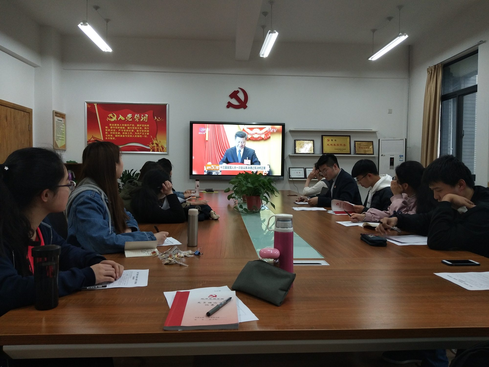 会议伊始,全体党员及预备党员通过视频集体学习两会精神与宪法修正案通过等相关理论知识,时刻跟紧党前进的步伐,不断充实提高自身的综合素质及理论知识体系。