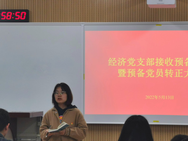 5月13日下午,经济党支部于S1301召开党员支部大会,会议由党支部书记常小文主持,全体党员和发展对象于线上线下参加。
