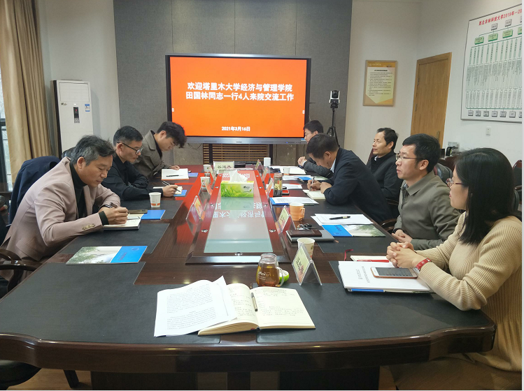 首先,张岁平书记代表学院对塔里木大学一行的到访表示热烈欢迎,同时简要介绍了学院的基本情况。随后,汪红梅副院长重点就本科生培养方案、人才培养模式、课程设置等方面进行了介绍;张寒副院长从学院师资队伍、科学研究、基地建设等方面介绍了学院的学科建设情况;夏显力副院长重点就研究生培养模式及质量与对方做了重点交流。在互动环节,双方重点从人才招聘、专业设置、招生工作、教学管理、考评机制、就业问题、思政建设等方面进行了深入交流。