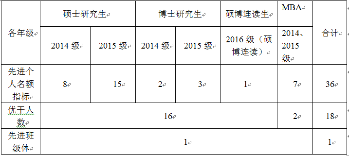 (三)先进班集体奖励1000元,优秀研究生和优秀研究生干部各奖励500元。同时被评选为优秀研究生和优秀研究生干部的先进个人,奖金只发一项。