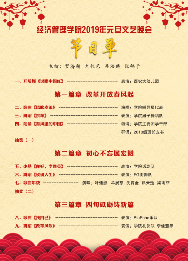 2019年元旦将至,为欢庆新年到来,展现永利官网学子积极向上的精神风貌,营造欢乐、祥和的节日气氛,学院决定举办2017-2018学年学生工作总结表彰大会暨2019年“改革开放四十载 经世济民谱新篇”元旦晚会,现将有关事宜通知如下: