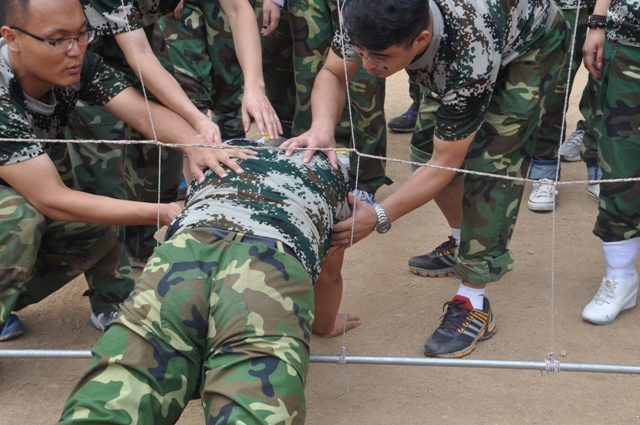 7月8日,同学们在野外基地进行了内容丰富、形式多样的勇气和意志、团结与协作精神的实训。惊险万分的“高空断桥”项目,挑战着同学们的恐惧与勇气;神秘刺激的“丛林真人CS枪战”项目,锻炼和检验同学们的智慧与身手;谨小慎微的“生死电网”项目、振奋人心的“绝壁求生”项目、充满创意的“鼓劲弹球”等项目,考察同学们的胆识与团结配合能力。也让同学们以特殊的方式体会了我校“诚朴勇毅”校训之“勇毅”的真谛。