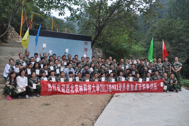 最后,老师、教练及学员们合影留念,我校2013级MBA新学员素质拓展训练圆满结束。