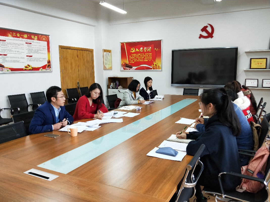 2019年2月28日下午,营销党支部于经管楼c205会议室,举办党支部组织生活会和民主评议,经管学院党委副书记张军驰老师参加会议,支部书记贺子婕主持会议,支部成员9人到场。