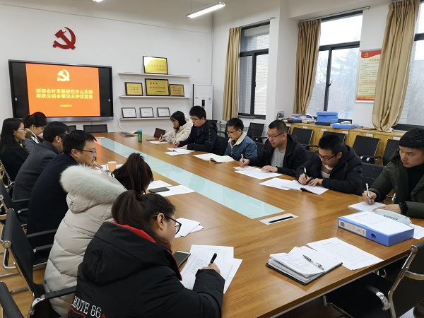 为了深入学习贯彻习近平新时代中国特色社会主义思想和党的十九大精神,提升党支部组织力,查找纠正“四风”突出问题,西部农村发展研究中心党支部于3月1日下午在学院C205会议室召开了党员组织生活会和民主评议会。本次会议由支部书记刘军弟老师主持,院党委委员、党委副书记张军驰老师受邀出席,支部全体党员参加。