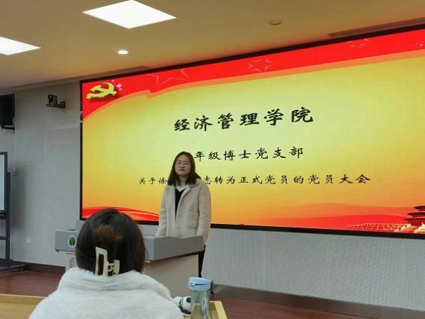 11月27日上午,低年级博士党支部于经管学院C301会议室召开预备党员转正大会。支部书记渠宇飞同志主持会议,支部全体成员参会。