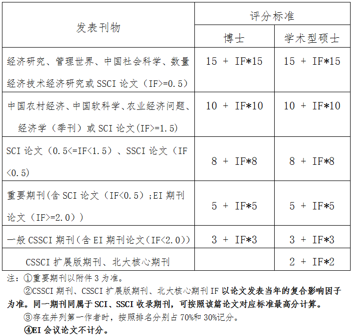发表论文必须满足研究生在读期间发表,并且本人为第一作者,导师为通讯作者(有些期刊不标注通讯作者时,共同作者中需要有导师),yl6809永利官网为第一署名单位;若符合其它条件(第一作者、第一署名单位)但论文中无导师者,按照该篇论文计算总分乘以0.6的系数核算。其中,北大核心和CSSCI论文以录用通知、收费证据(需导师签字审核确认)或期刊原件为准,三大检索论文(SSCI、SCI、EI)以录用通知或论文原件为准。上一年度已经参与学业奖学金评定的论文成果不允许二次使用,一经发现,直接降为三等。期刊等级及影响因子以论文录用或见刊当年为准。具体评分标准如下: